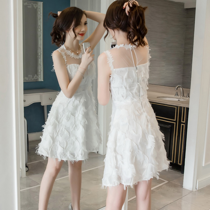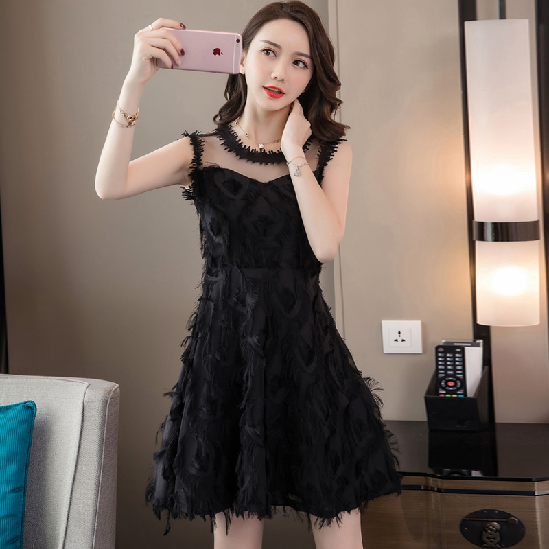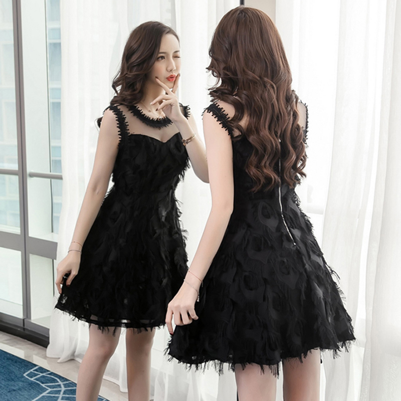 韓版羽毛透視網紗修身洋裝(3色)