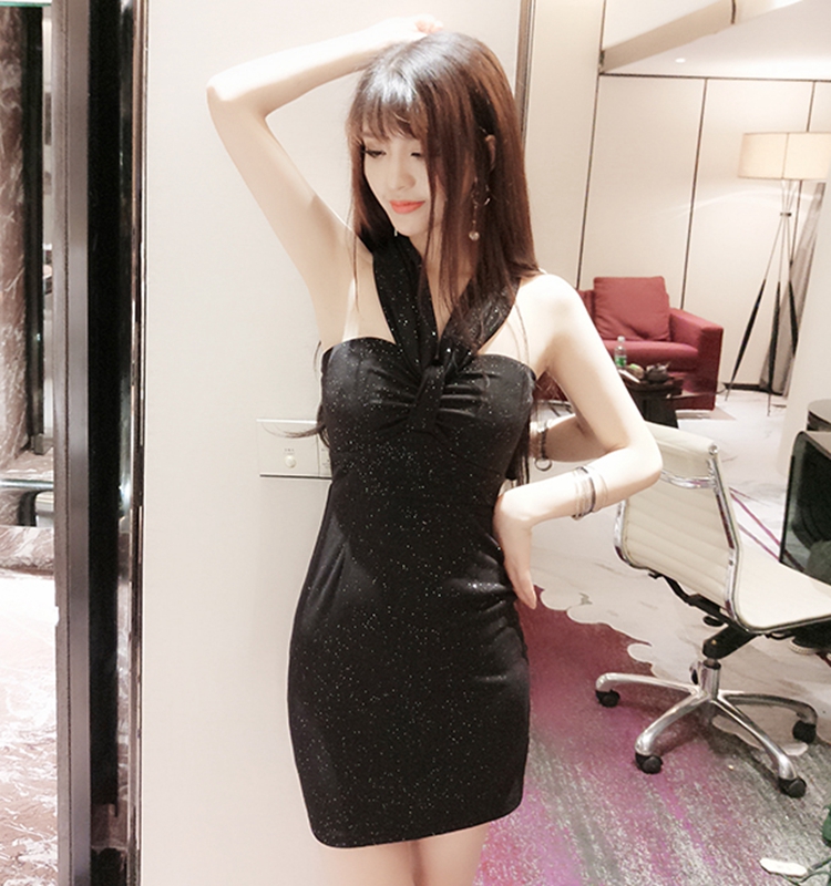 韓版性感一字領掛脖多穿法包臀連身裙(2色)
