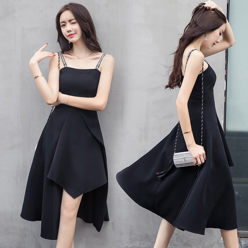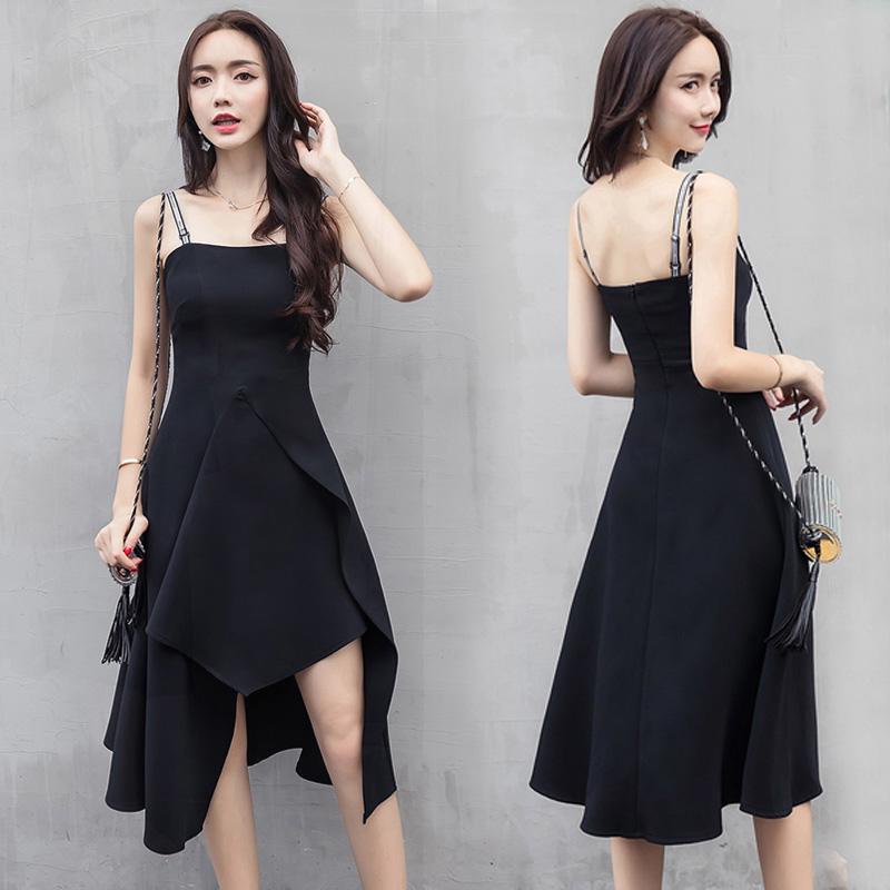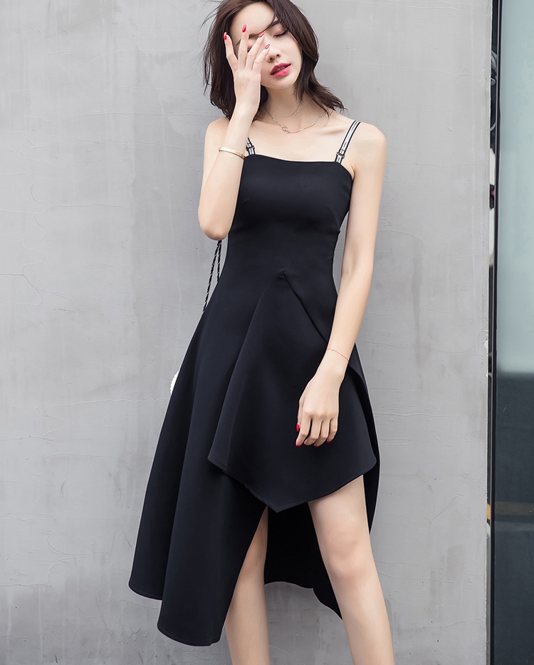 性感甜美吊帶裹胸顯瘦抓皺不規則下擺連身裙